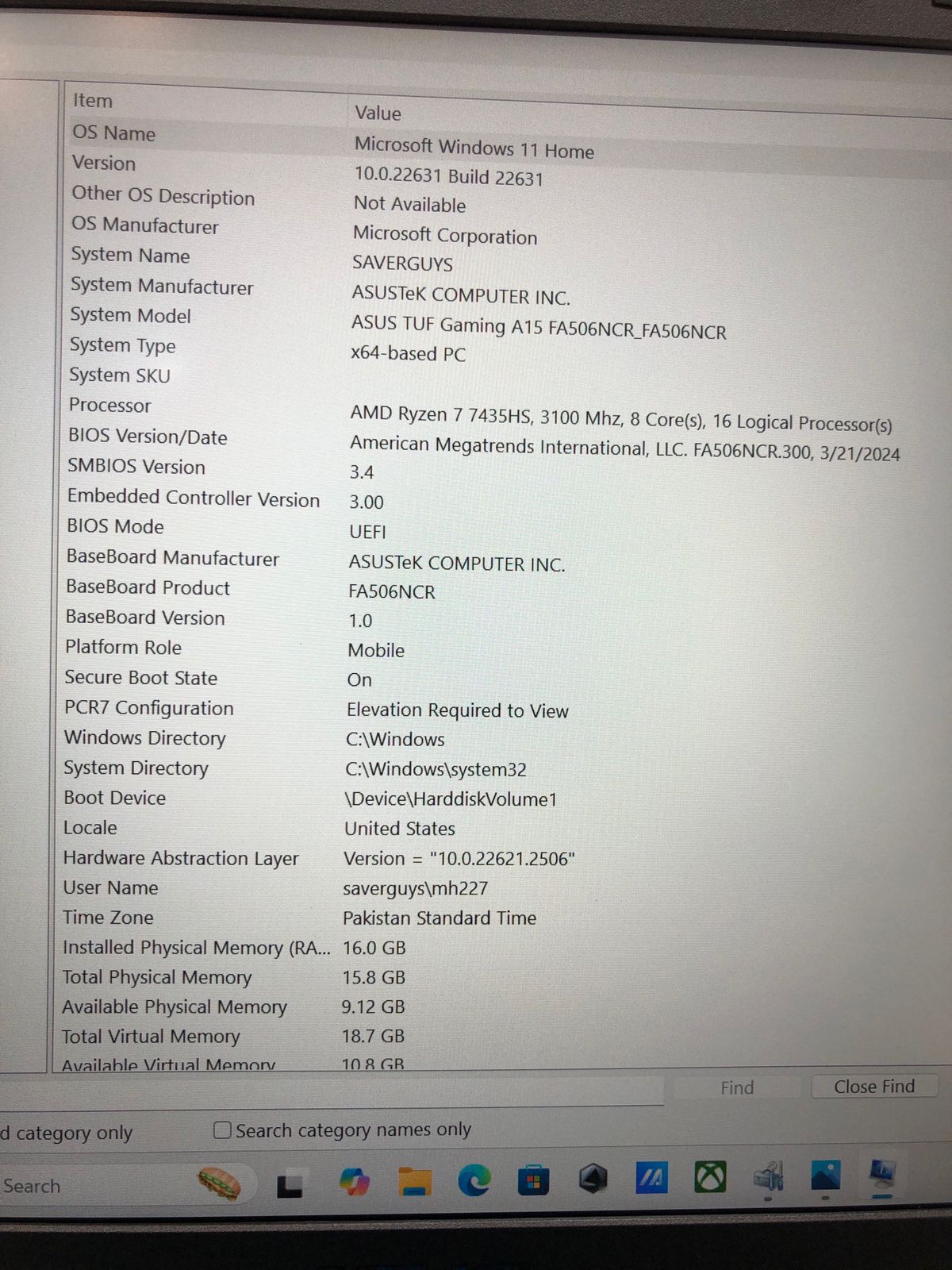ASUS TUF Gaming A15 | AMD Ryzen 7 7435HS | 16GB+512GB | NVIDIA RTX 3050 4GB | RGB Backlit | 144Hz |