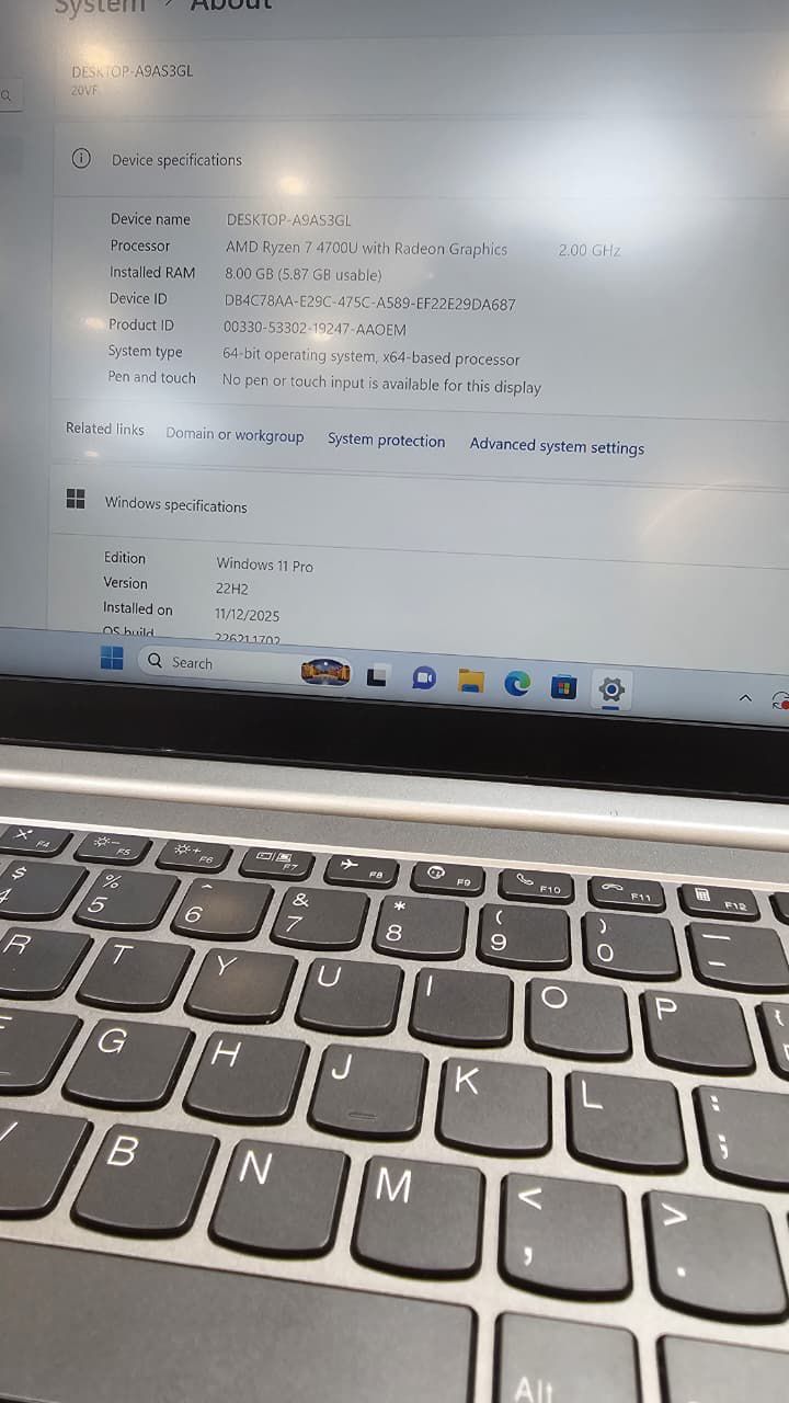 OctaCore Lenovo ThinkBook 14 G2 ARE | 2GB Dedicated Graphics | RYZEN 7 4700U | 8GB RAM 256GB SSD | backlit KB | 14″ FHD Display | Win11 Pro & Ms Office activated | Type C Original Charger